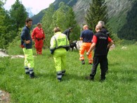 | ADDESTRAMENTO CARONA 2 Località: Rifugio Calvi - Val Brembana (BERGAMO) Allertamento del gruppo sommozzatori per le prove di immersione in acqua ad alta quota con impiego di elicotteri e di mezzi fuori strada. Partecipazione di 10 volontari carpentieri a supporto delle operazioni e per il servizio del trasporto a terra.